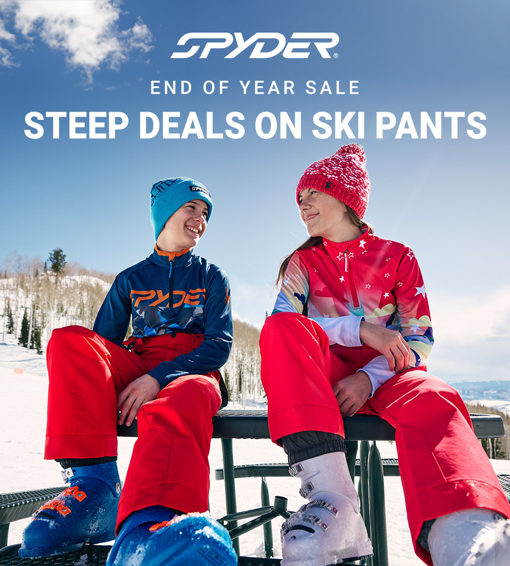 Ski Pants Steeply Discounted! Take an extra 50% off sale styles with code NEWYEARS. Limited stock! Act fast as your size may not stick around! | | | | | MENS BOUNDARY Black $189 with code: $76 | WOMENS SECTION True Navy $199 with code: $60 | | | | | | BOYS PROPULSION Spyder Red $160 with code: $56 | BOYS PROPULSION Black Camo $160 with code: $56 | | | | | |